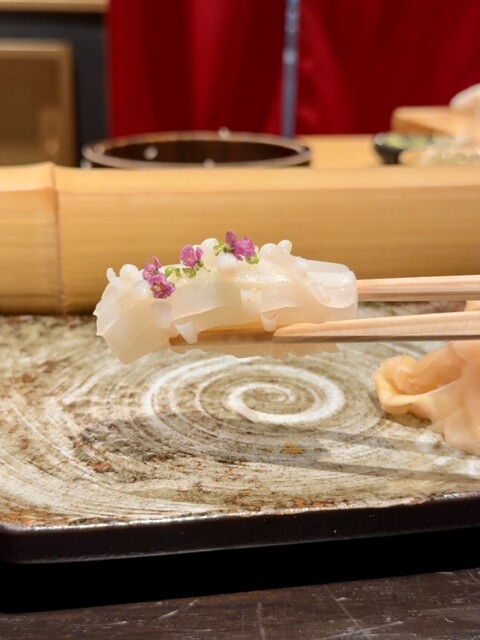 中トロは口の中でとろけるような脂と赤身のバランス。石鯛は身の弾力と清らかな甘み、ヤリイカはねっとりとした舌触りで繊細。シャリの温度や酢加減も抜群で、ネタとの一体感が心地よいです。