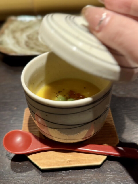 季節の前菜でスタート。口当たりが優しく、これからの展開に期待が高まります。