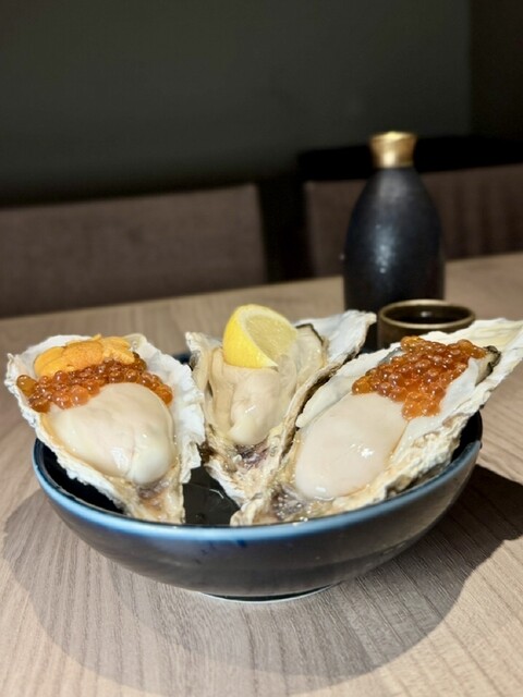 料理はまず「特選生牡蠣三種盛り」(1600円)から。鮮度も良く、濃厚さや後味の爽やかさなど個性が楽しめ、牡蠣好きには外せない一皿です。さらに「牡蠣の天ぷら」(420円)は衣が軽く、熱々で旨みたっぷりの牡蠣とのバランスが絶妙でした。