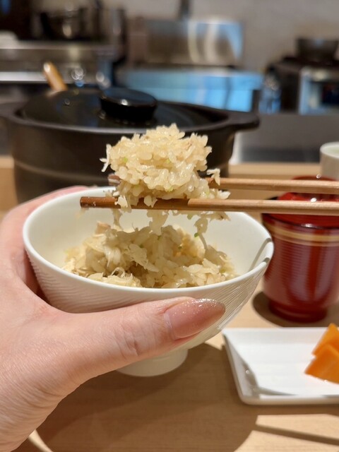 締めの渡り蟹の土鍋ご飯も香ばしく、蟹の旨味がしっかりと感じられます。
