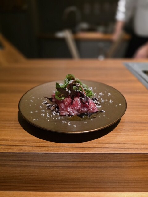 この日は「USHIOの厳選OMAKASEコース(18,150円)」をいただきました。USHIOさんといえば、鹿児島黒毛和牛をはじめとした九州産の上質なお肉を厳選して提供していることで有名。
