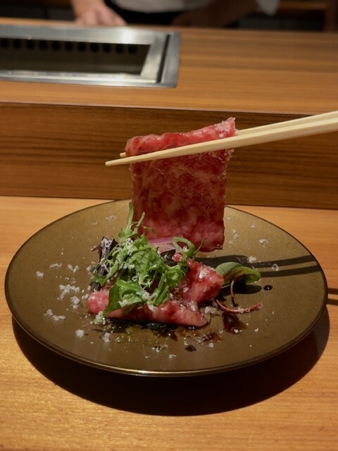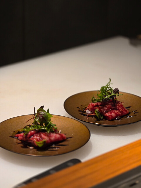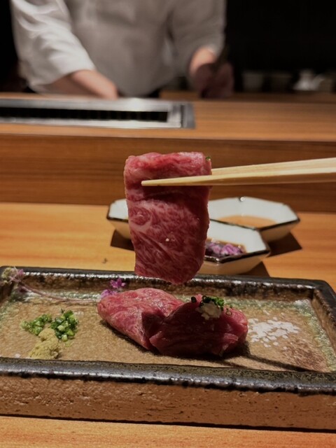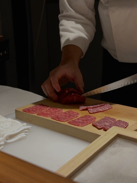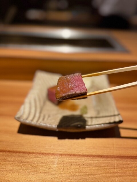 特に雌牛から選び抜いた赤身や希少部位を、少しずつ最高の状態で味わえるよう、部位ごとに適したカッティングと火入れで出してくださいます。