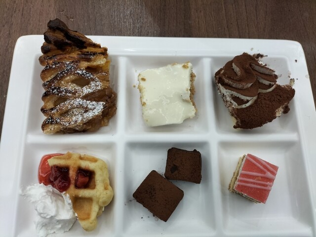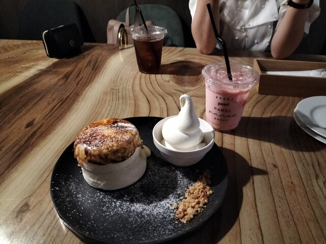 いちごモンブランパンケーキを頼みました!三段あったので、1段目をモンブラン、2段目を果物とアイス、3段目をソースで食べました!どのトッピングもとっても美味しく、大満足でした!チーズのパンケーキがすごく...