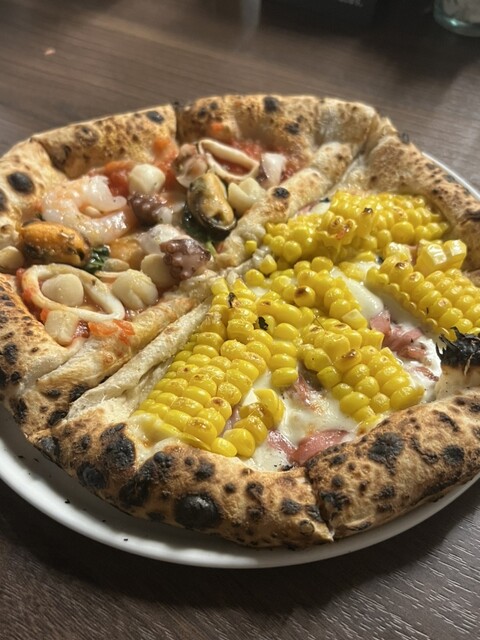 ◉ピザメタメタ/ペスカトーレ.とうもろこしとモルタデラハム2530円