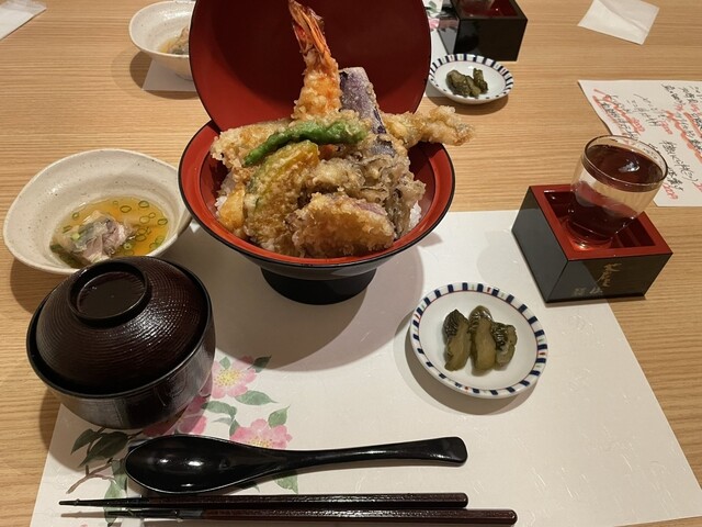 天丼が美味しかった。お酒は蒼天伝を頂いた。