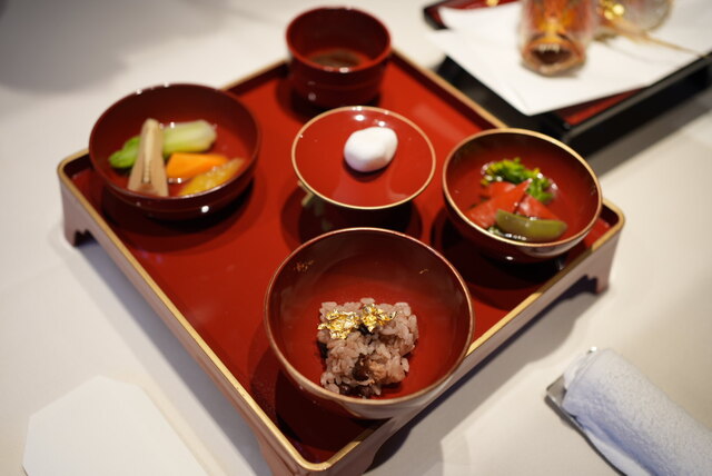前菜は大和野菜を使い、奈良県の形を表現したもの。