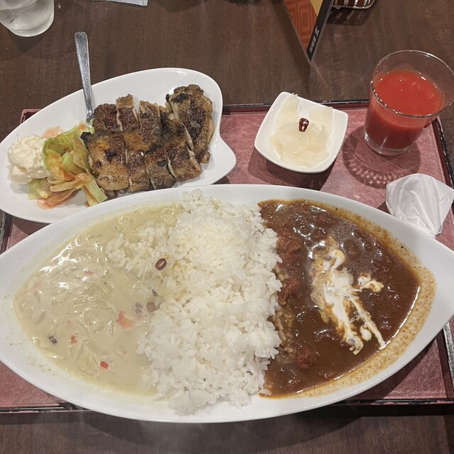 トマトカレーはトマトがごろっと入っており、スパイスとトマトの酸味が合わさるとうまい!