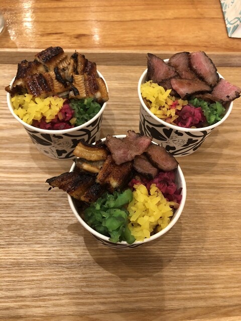 鰻or和牛or鰻&和牛の3種類から選ぶことが出来て、どの商品もカップサイズにカットされた鰻や牛タンをタレが染み込んだご飯と一緒に味わえて最高に美味でした!✨