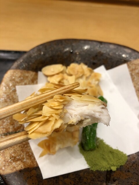 こちらは、鯵をアーモンドを使って鱗を表現した創作料理です!✨