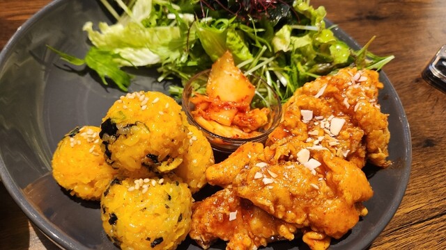 韓国チキン定食が新しくなって、惣菜2品付き☆