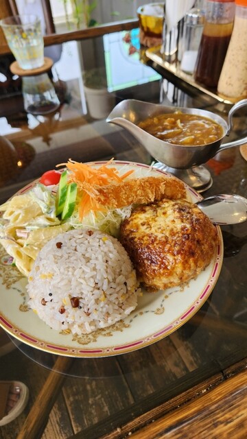 オーナー手作りのハンバーグ、カレー
