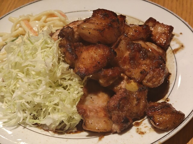 肉の下に隠れたキャベツが肉汁を吸い、ご飯が進む一皿。