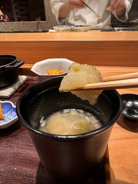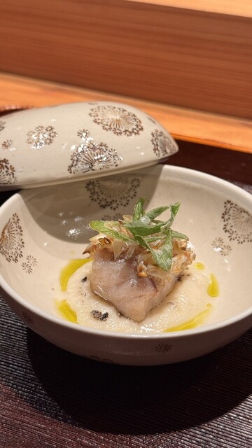 焼物の甘鯛松笠焼きは特に感動した料理。皮が驚くほどカリッと仕上がり、身はふっくら。蕪ソースの自然な甘さが上品にまとまっていました。加賀蓮根はその場で七味を「煎じて」香りを立たせる演出があり、細部にまでこだわりがあるのが伝わります。