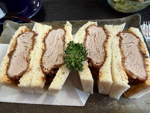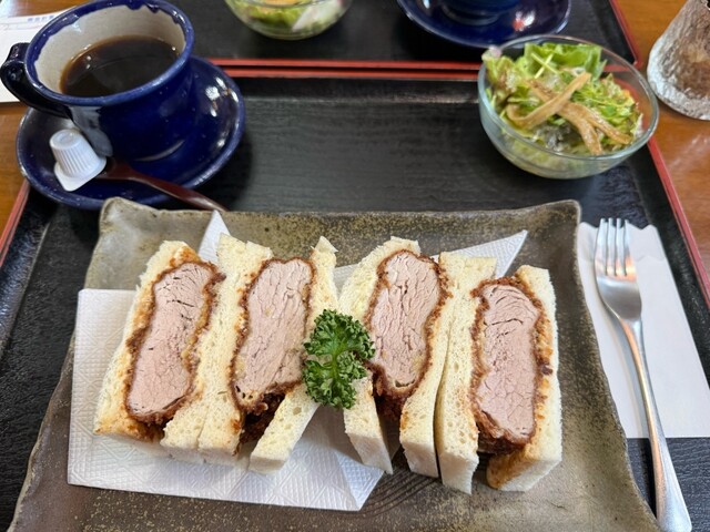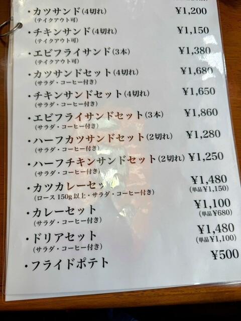 気合いを入れて早く伺いましたが雨のためか1番でした。室内が少し寒いのが残念でした。注文は評判のカツサンドセットとエビフライサンドセット!