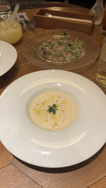 生ハムは2人でLサイズを(笑)ピザもハーフハーフに出来るので好みで選べますし、白子のフリットは中はぶりんぶりんですし、菜の花と牡蠣のリゾット