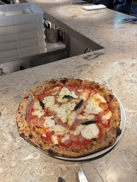 窯焼きピザはプロシュットとラザーニャを注文しました。とても美味しくて、次回は他のピザも食べてみたいと思いました。