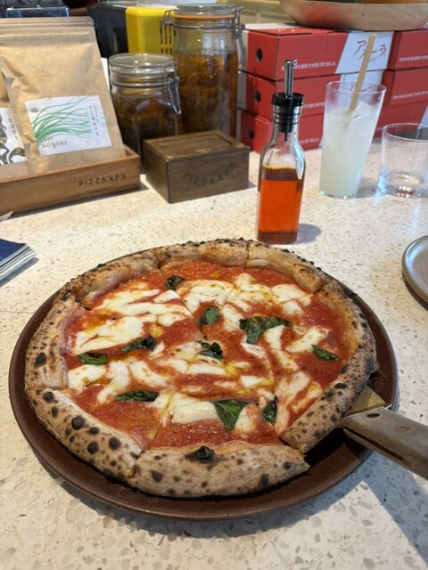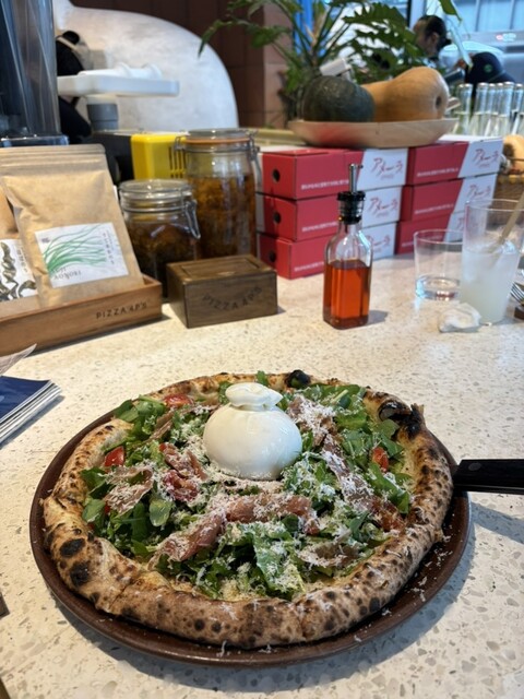 お目当てはブラータチーズがどっとのったピザ、ピザ生地以外は生野菜、生ハムなのでサラダ感覚でいただけ、とてもヘルシーな気がします。