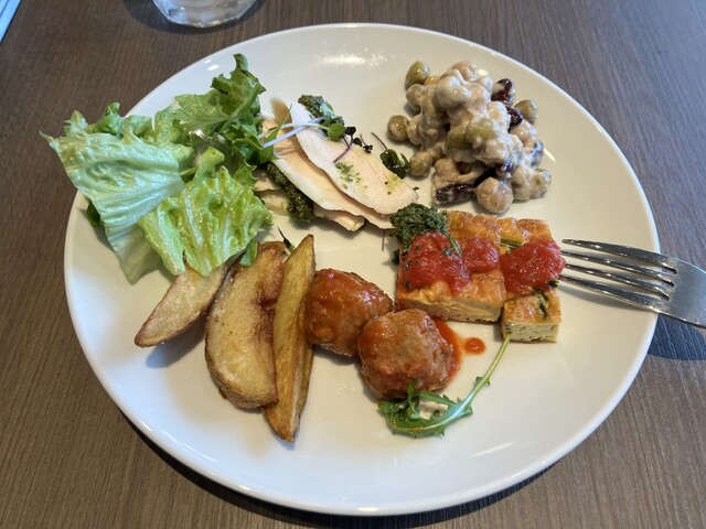 サイドメニューのパン、スープ、サラダ、ドリ...