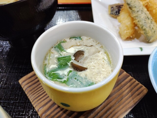 茶碗蒸し…小海老やキノコ、鶏肉が入りおいしい。