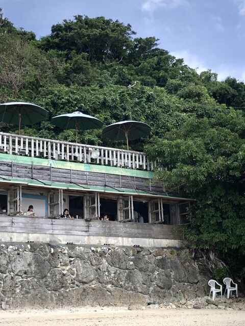 那覇空港から反対の海岸へ車で40分、車でしか行けないかな 目の前の浜辺を見下ろしながら遠くまで広がる海を眺めます。浜辺の黄色いカヌーがいい感じ。店内はゆったりとした時間が流れ、平日秋の沖縄ならでは人気なく待つ人もなく自由にいつまでも居られる。食事メニューは少なくクロックムッシュをいただいたけどおいしい。パッションフルーツとオレンジのセパレートティーもオシャレでおいしい。入り口の横を降りてゆくとプライベートビーチ!砂浜が広がりエメラルドグレードの海がすぐそこ。食後のお散歩も楽しい。満点のカフェでした。観光地詰め込みの合間にぜひ行ってほしいです。店内にエアコンがなくて真夏は扇風機で頑張ってもらってますとお店の方から伺いました。エアコンを付けたとしても全然効かないそうです。丁寧な接客でした。