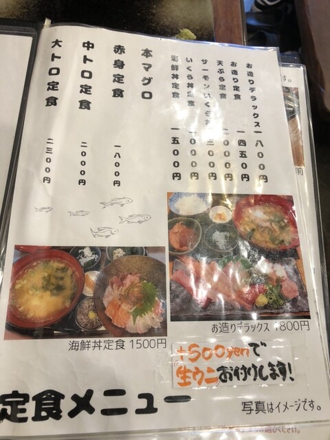 行く前から、デラックス定食2000円とお造り定食1600円を食べると決めてます。お座敷に通されて注文しようとしていると、あちこちから『おまかせ定食』という声が聞こえてくるんです。