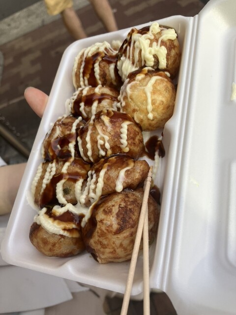 本当に久しぶりに再訪しました。変わらず人気のお店で、3組ほど並んでおられましたが程なく注文。醤油ベースメニューが好きなので辛口とヤングBを。とりあえず熱々を路上で頂きましたが、昔と変わらず外側カリッと中はやけどしそうに熱々トロトロ…美味しすぎる!個人的にはNo.1たこ焼きです。ただ、自宅に持ち帰り温めて食べると…美味しさは半減してしまうので、是非出来たて熱々を食べて欲しいです。めちゃくちゃ美味しかったです。これからもこの味を守って欲しい…ご馳走様でした