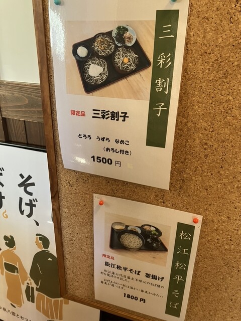 それからしばらく並んで14時前に蕎麦を頂きました。三彩蕎麦、とろろ蕎麦を注文。こちらの蕎麦は歯応えがとても良い!別格の美味しさでした。朝ドラばけばけ効果&神在月で出雲松江周辺は混み合っていましたが、無事にこちらのお蕎麦が頂けて良かった。ご馳走様でした。