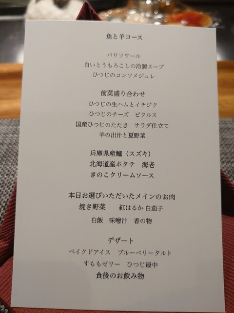 締めのデザートもアイスを鉄板でフランベしたり、1つ1つを丁寧な仕事をされてます。最中も羊の形してたり遊び心もシェフの人柄なんですかね。聞くと一宮の鉄板焼「ホンジン」さんに勤めてらしたとか。御本人が羊肉が1番好きなので、もっと魅力を広めたいとのこと。