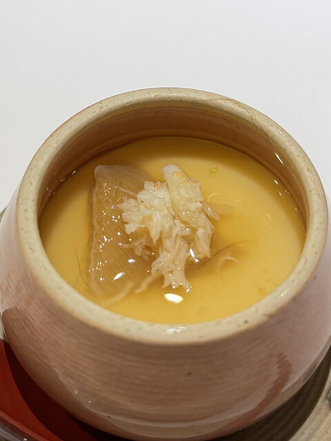 熱々が好きなので、熱々の状態で提供されるのが嬉しく、個人的にもポイントが高かったです。大きなフカヒレが一欠片入っており、蟹の旨みがしっかり効いた出汁がとても美味しい茶碗蒸しでした。