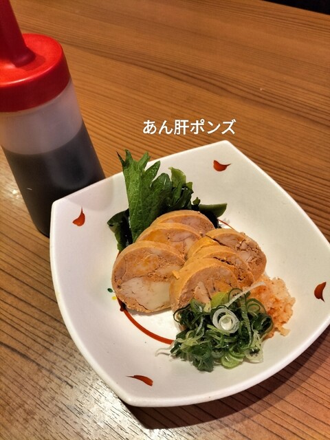 濃厚でとろけるあん肝は美味、ポンズでさっぱりと