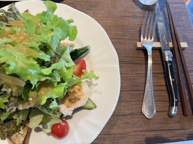 もりもりに野菜がのった最初のお皿は、野菜の下にいろいろなお料理が隠れています。