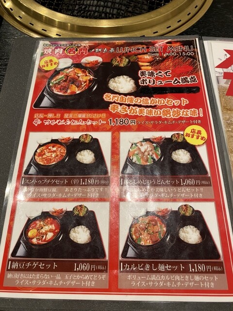 カルビランチセットは、和牛(の方が値段高い)or外国牛で金額が少し違うようで、和牛をチョイス。