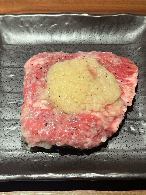 「犇オリジナルユッケ」は、見た目からして犇の文字が強烈に映える一品で、金粉がちりばめられた豪華さが印象的!