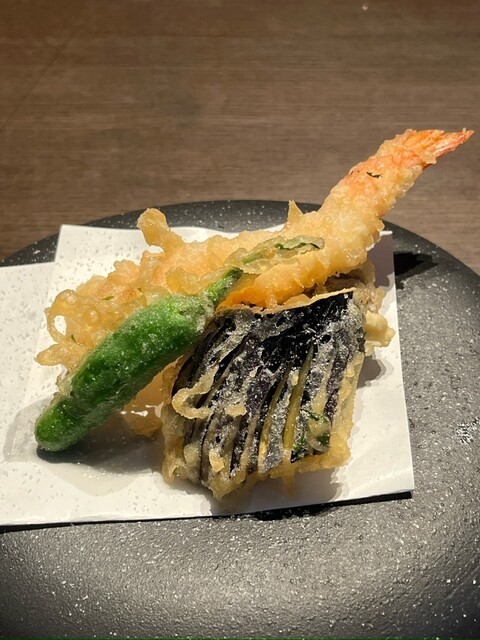 季節の天麩羅は海老、ししとう、しいたけ、なすを頂きました。