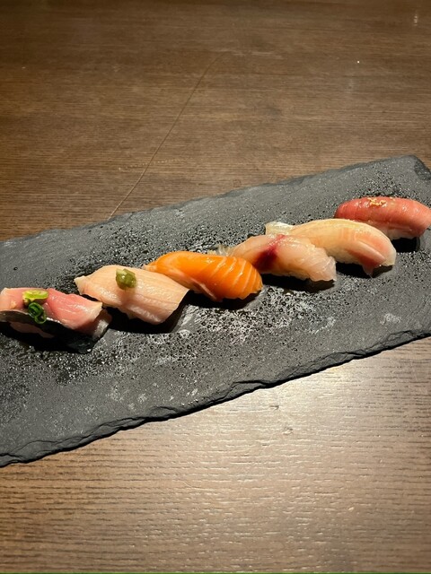 、サーモン、スズキ、真鯛、中トロの旬なネタや珍しいネタを頂きました。