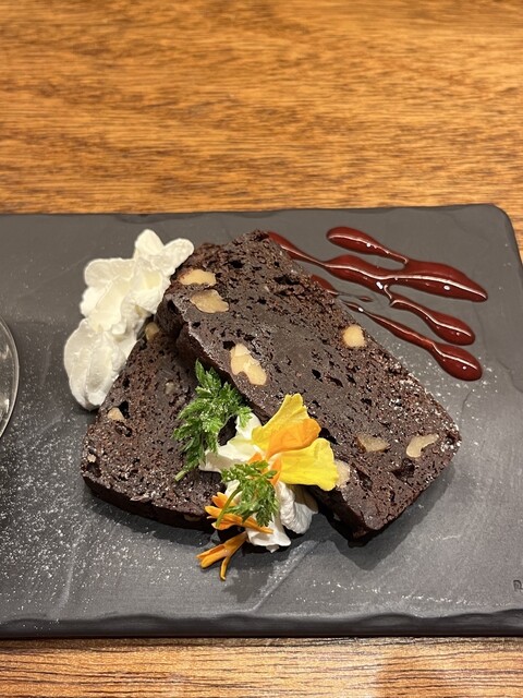 チョコレートケーキは、ビターで濃厚な甘みが広がり、程よく酸味の効いたベリーソースとホイップクリームがアクセントとなり、絶妙なバランスを楽しめます。