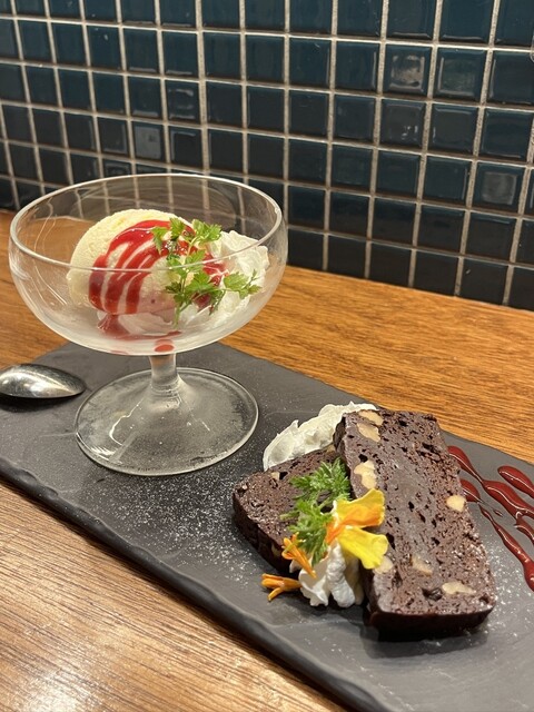 食後のデザートには、アイスクリームとチョコレートケーキが登場✨