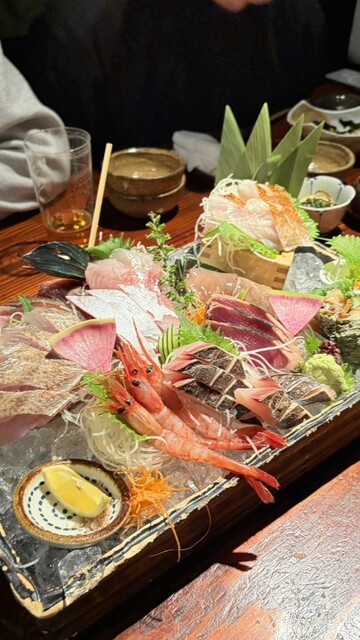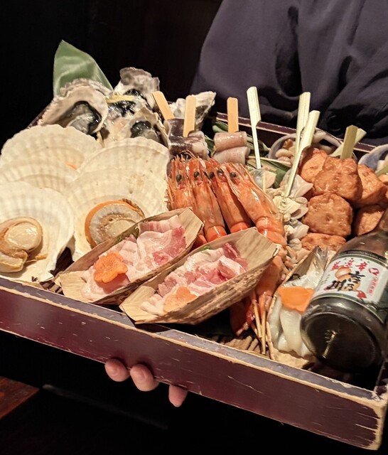 刺身、もずくなどの海鮮、鳥刺し、串焼き等々...