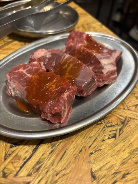 焼肉はどれも肉厚でジューシー。特にハラミが柔らかくて、口の中でほろっと崩れる感じがたまらない。牛タン塩も、厚めに切られていて、歯ごたえとジューシーさが絶妙。イチボはしっかりとした旨味があり、カルビは脂身と赤身のバランスが完璧。飲めるホルモンは、ビールをぐいっと進ませる味わいで、ホルモン好きにはたまらない一品。