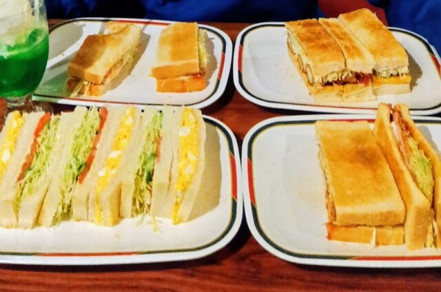 クリームソーダとクリームコーヒー、どちらもプラス200円でモーニングのハムエッグサンド付きにしました。