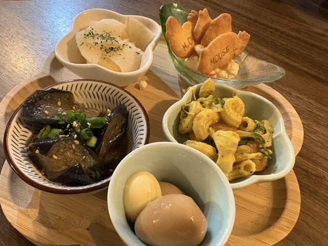 ゆず大根、クリームチーZOO、カレー味のマカロニなど、バラエティ豊かな5種類の小鉢。