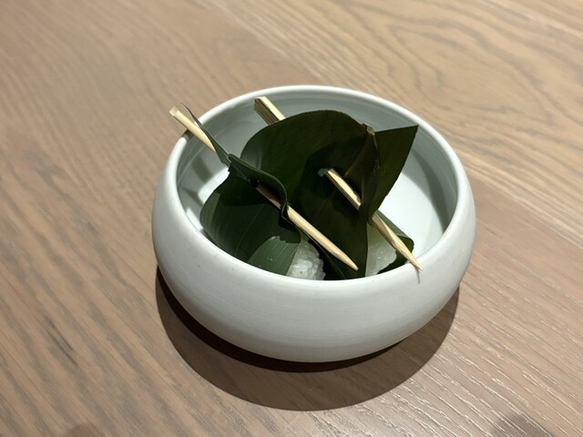 ■厳選赤身の肉寿司 キャビア乗せ この日はサーロインを使用。お肉にはあらかじめ味がついており、軽く炙られたことで香ばしさと旨みが引き立っています。たっぷり乗ったキャビアの塩気がサーロインの甘みを際立たせ、贅沢感のある一貫でした。