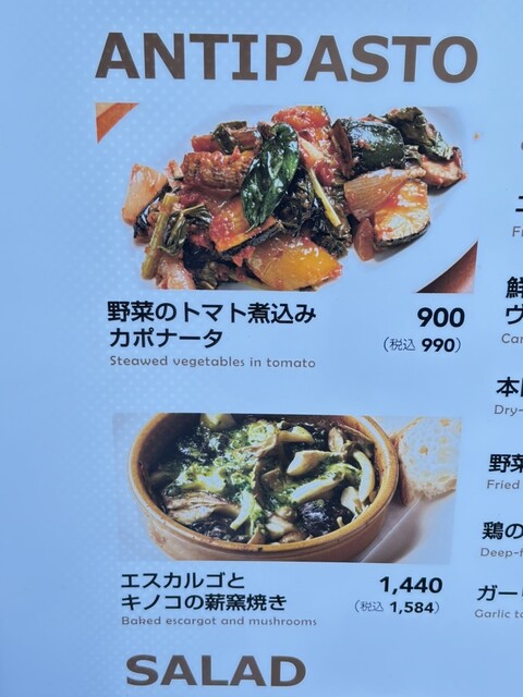 メニューからも確かに新鮮な野菜をたくさん使用されていることがわかる