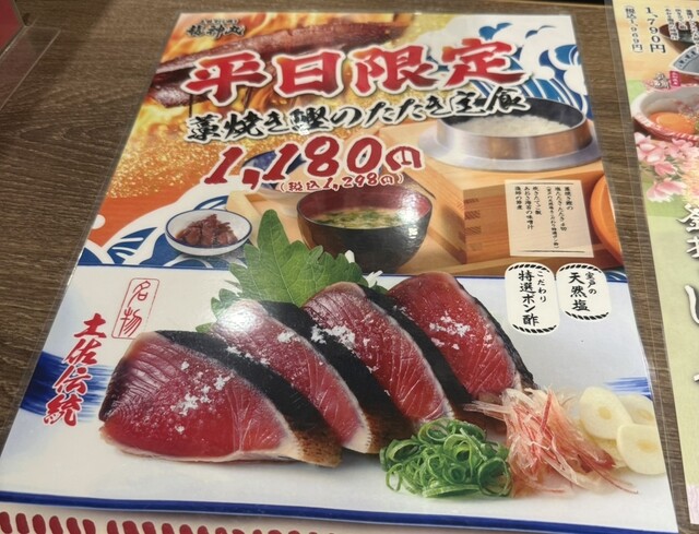 大好きな牡蠣フライと、カツオのたたきがセットになったものを注文。