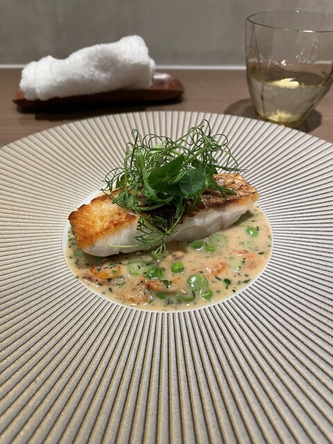 真鯛 胡麻+グリーンピース+桜エビのソース