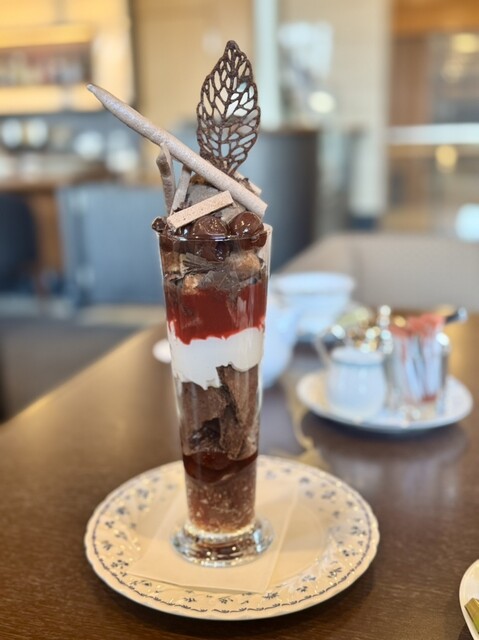 クラウンプラザホテルので、モンブランと期間限定のチョコレートパフェを頂きました。