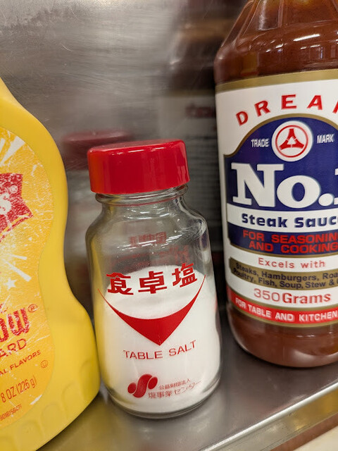 味付けはしていないそうで、塩、しょうゆ、ステーキソース等、自分で味付けです。