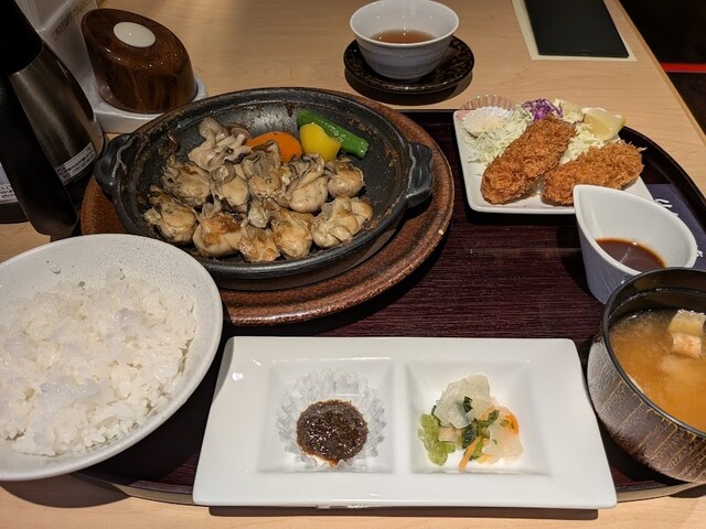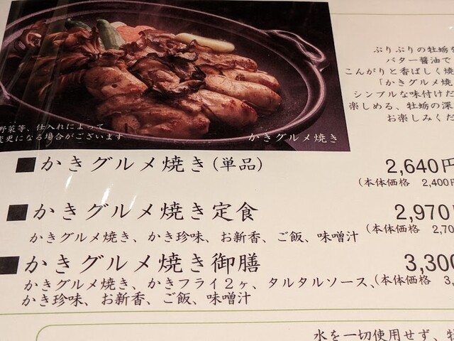 カキフライ、土手鍋も捨てがたいですが、グルメ焼き御膳3300円にしました。