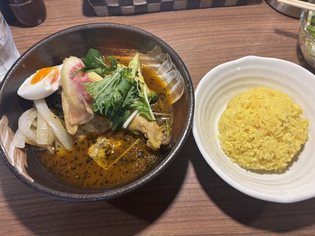 ほろほろチキンはスプーンで簡単にほぐせます。素揚げのカボチャやニンジンなど野菜もゴロゴロ。札幌の本場スープカリーは流石です。美味しくいただきました!!