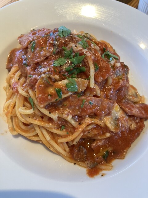 パスタはマスター特製のベーコンのパスタをご注文!!